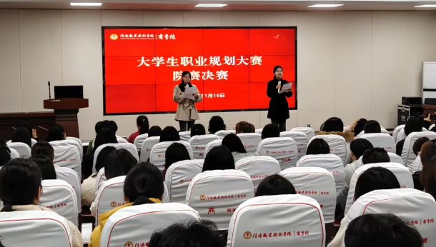 11月16日晚,商学院2025年大学生职业规划大赛在东教楼报告厅精彩上演。本次大赛以“筑梦青春志在四方,规划启航职引未来”为主题,经过前期班赛、学院初赛的层层选拔,最终选出8名优秀学子同台竞技,用清晰的职业蓝图与饱满的青春热情,展现了新时代商科青年的责任与担当。